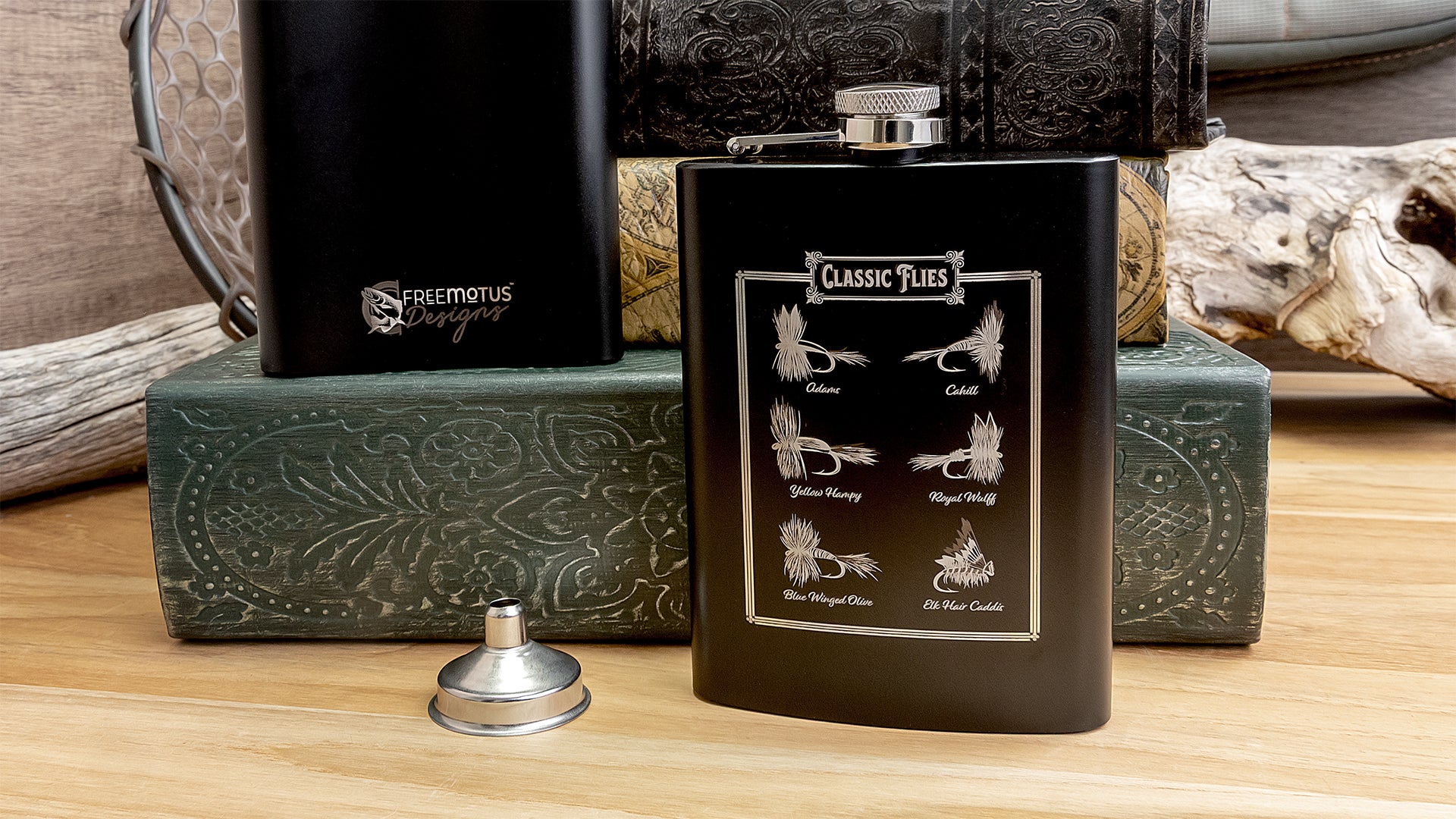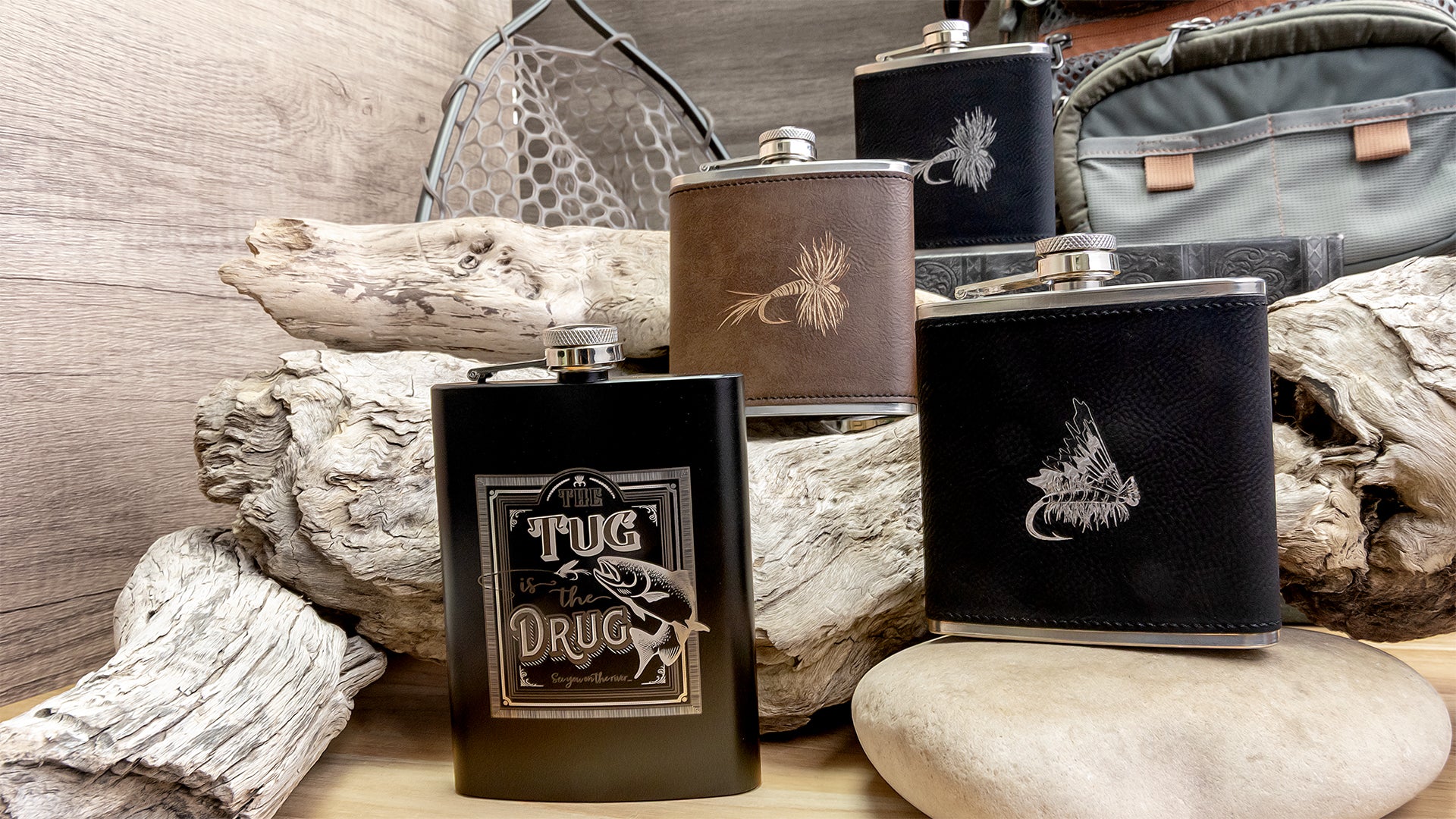 Another version of the hip flasks with laser engraved designs.