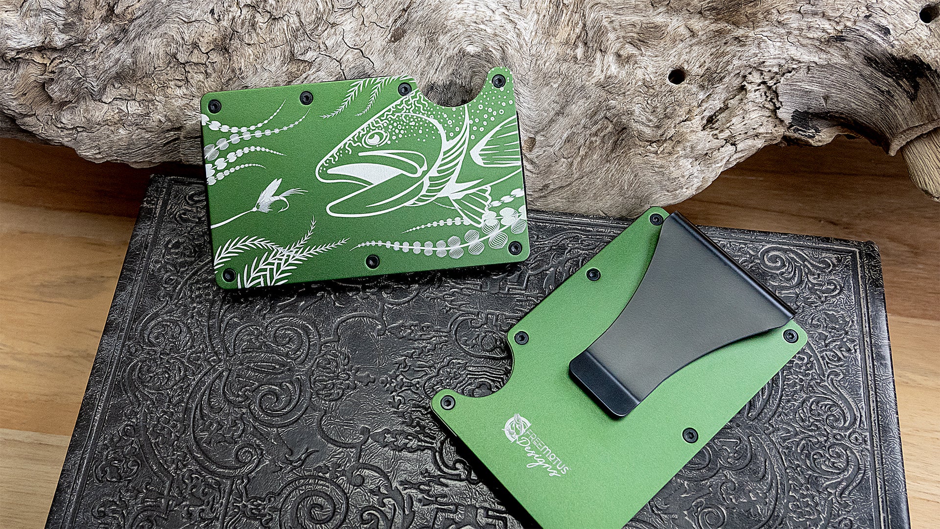 Get a laser engraved aluminum card holder for a minimalistic style wallet.