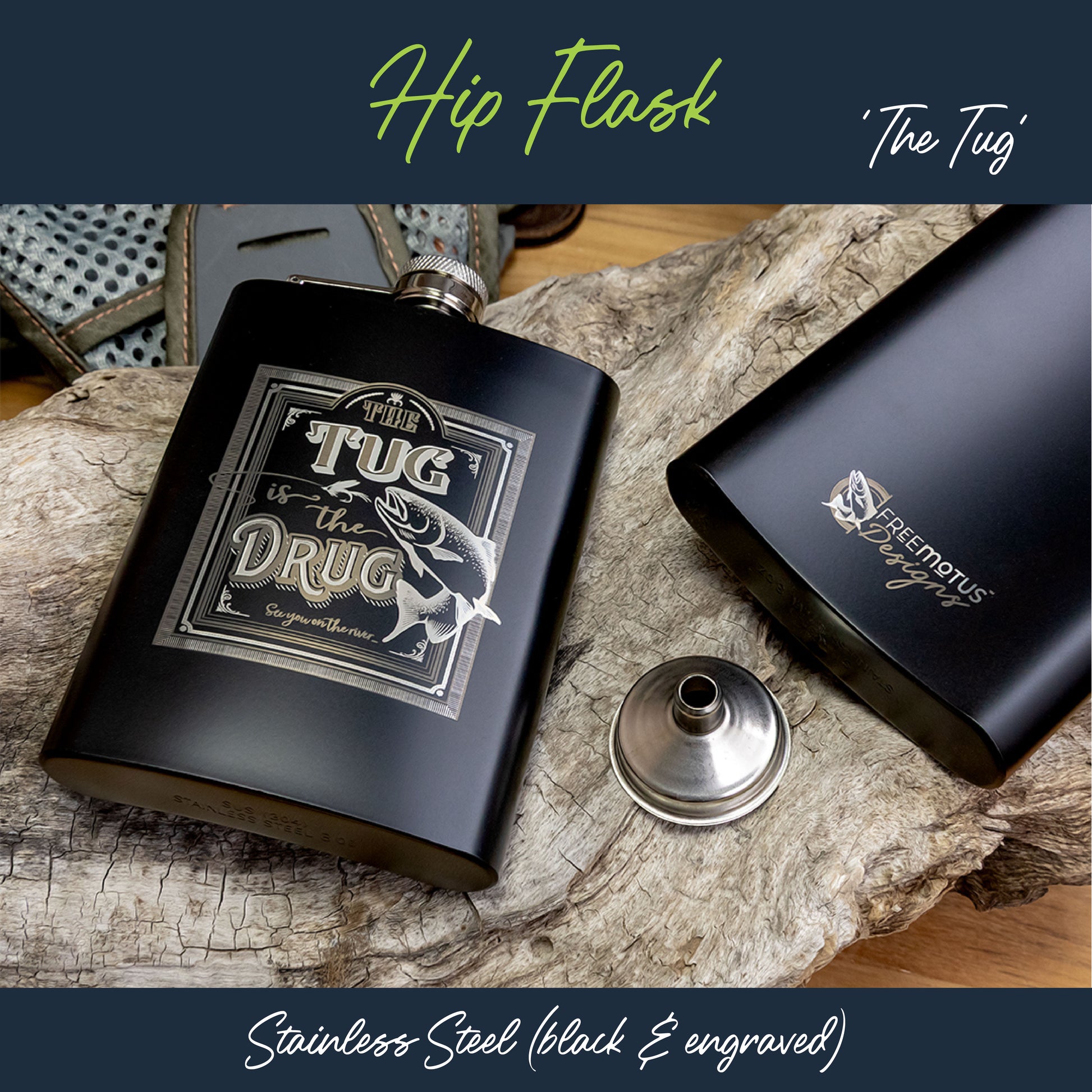 - Body (8oz) & cap are made from stainless steel with an engraved black body.